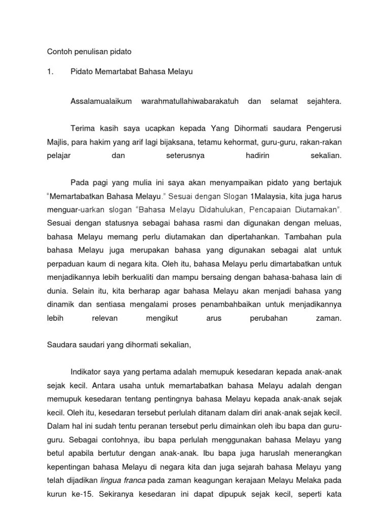 Contoh pidato bahasa melayu dunia .
